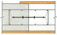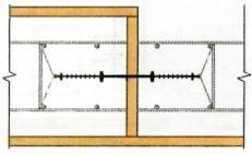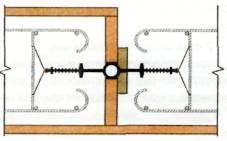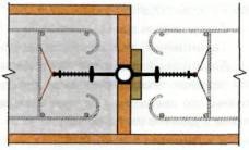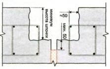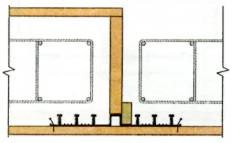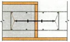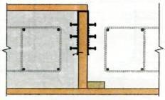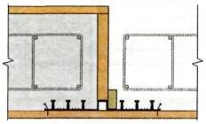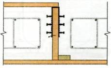 Внутренние шпонки крепятся вязальной проволокой к арматуре с шагом около 50см. Крепление осуществляется на краевых анкерах с помощью скоб. Внешние шпонки для стен крепятся к опалубке при помощи мелких гвоздей с шагом около 50 см. в области кромки с таким расчетом, чтобы при снятии опалубки шпонку не вырвало из тела бетона. Для этого рекомендуется забивать гвозди на 1/3 длины и загибать их на 45-50° от вертикального положения.