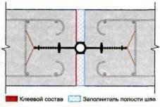 При установке опалубки на шпонки необходимо обеспечить герметичную и стабильную торцевую опалубку. Опалубка должна плотно примыкать к шпонке. Места сопряжения шпонки и опалубки должны быть хорошо уплотнены, чтобы при бетонировании через них не вытекал цементный раствор. При обнаружении неплотностей, которые могут привести к вытеканию цементного раствора при бетонировании, все обнаруженные места надежно герметизируют с помощью клейкой ленты, которая удаляется перед снятием опалубки.