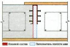Бетон сопрягаемых швов элементов конструкции должен обладать высокой плотностью и непроницаемостью. Большинство типов шпонок препятствуют сквозному прохождению воды через зазор шва, но они не обеспечивают защиту от фильтрации воды в обход шпонки, через поры, капилляры и трещины в бетоне.