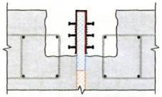 3. П-образные гидрошпонки крепятся к арматурному каркасу и материалу заполнения деформационного шва.