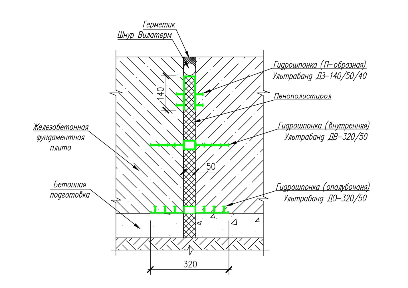 Гидрошпонки «УЛЬТРАБАНД» предназначены для гидроизоляции железобетонных конструкций подземных и заглубленных сооружений в местах обустройства деформационных и технологических швов бетонирования. Могут применяться на объектах, контактирующих с питьевой водой. Температура эксплуатации варьируется от -40 до +80 °С. Ассортимент гидрошпонок «УЛЬТРАБАНД» представлен различными профилями и типоразмерами для решения любых строительных задач. Они поставляются в рулонах и уже готовы к монтажу на строительной площадке.